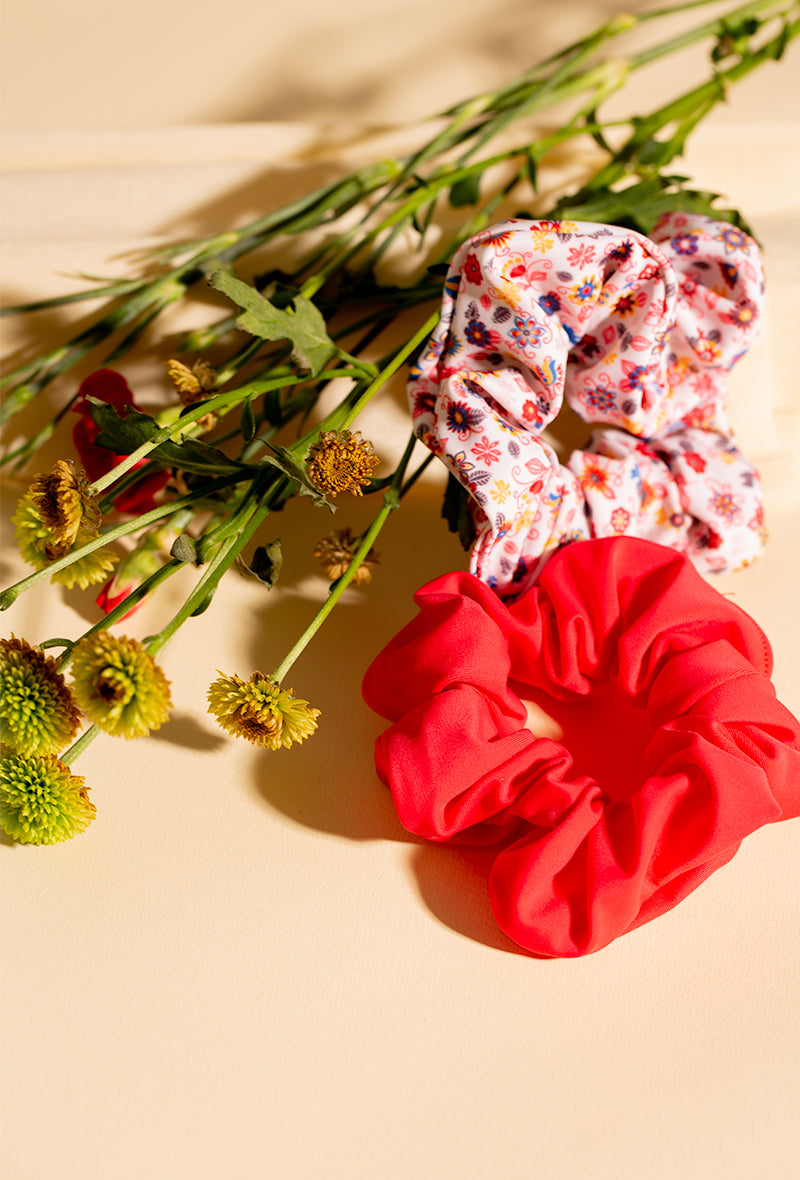 Surprise pouch - 3 scrunchies - 1 plain + 2 printed