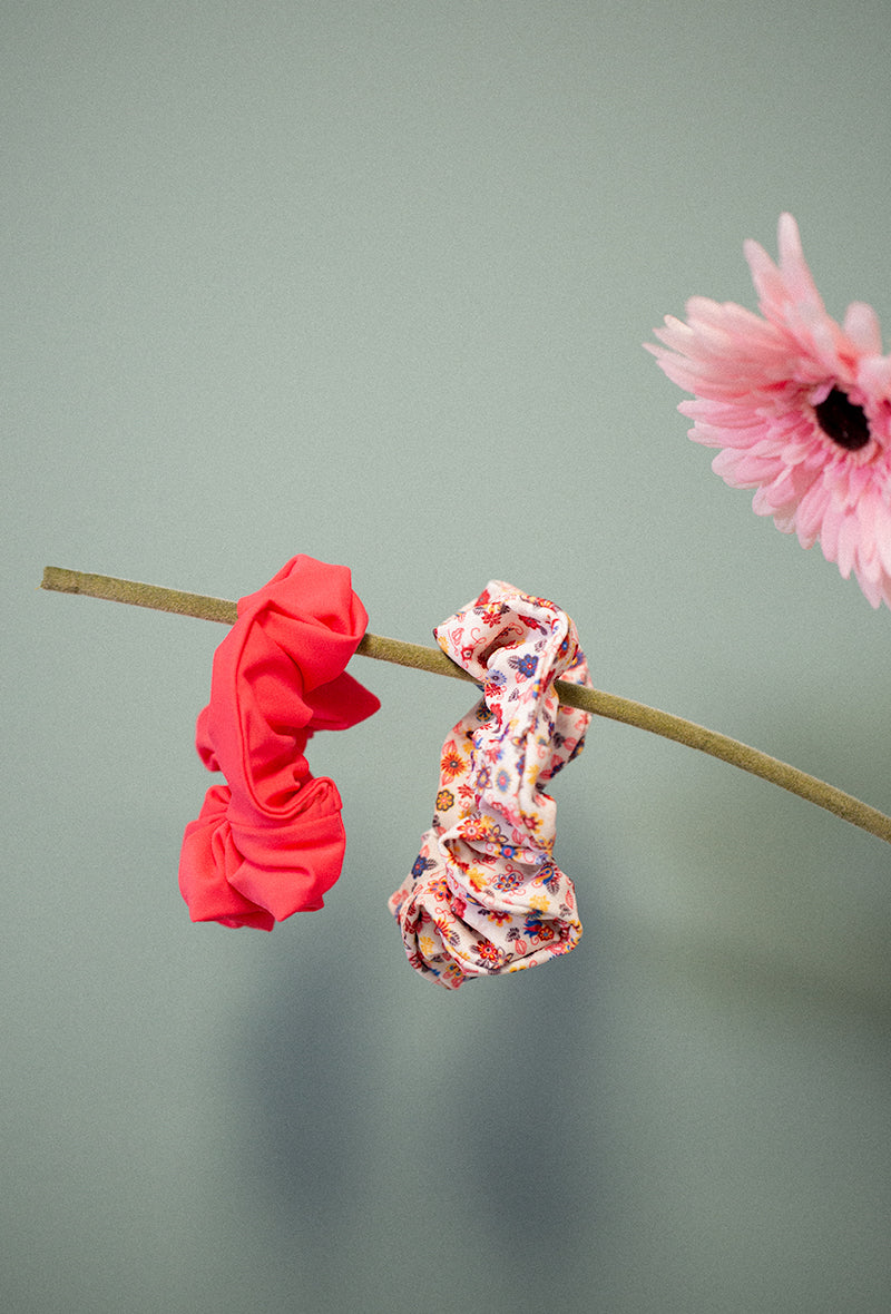 Surprise bag! To accessorize your summer ensemble, choose an assembly of 3 colorful scrunchies. To take action against waste, we are harvesting offcuts from swimwear production to create more than 50 original and colourful scrunchie designs.