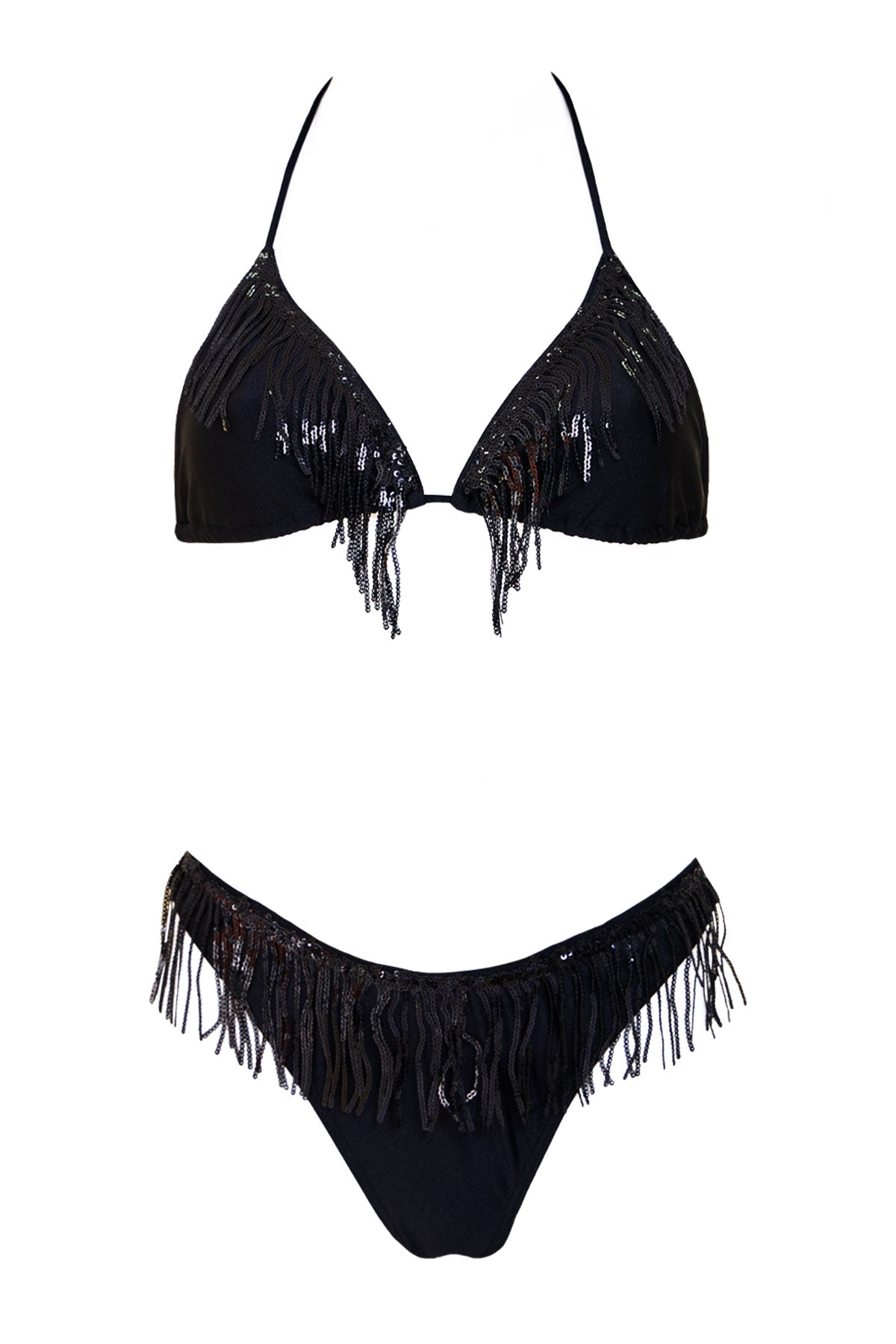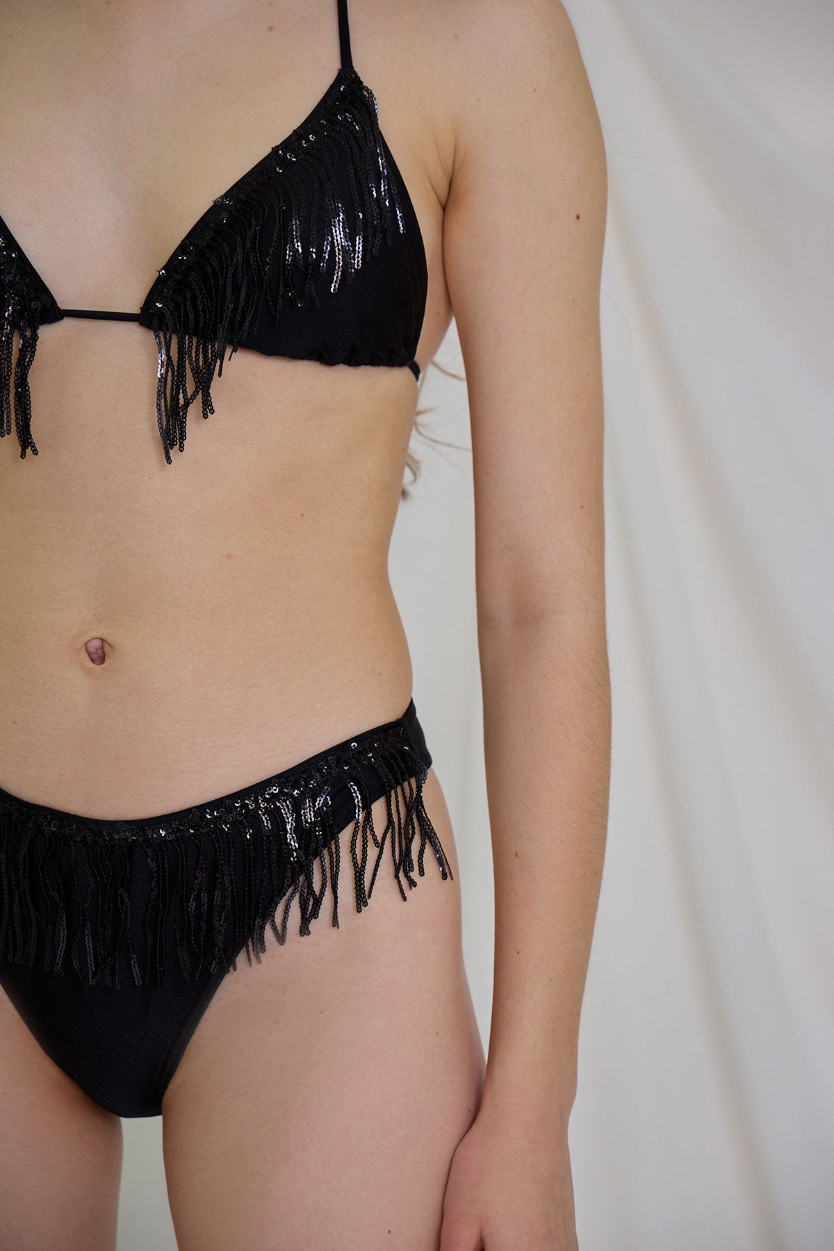 Le "The Midnight Fringe Bikini" est pour les audacieuses, les belles, les féminines sans complexe - chaque détail est un chapitre de votre histoire.