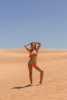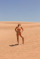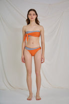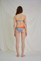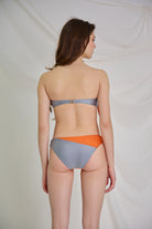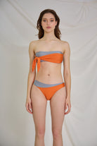 Nous vous présentons notre bikini chic et unique inspiré du style Gatsby Jazz Age avec des tissus brillants. Il se compose d'un haut bandeau gris avec un lien orange qui peut être porté par-dessus pour une touche de couleur et un style supplémentaire.