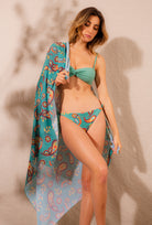 Accessoire de mode original pour accessoiriser une tenue. Les motifs issus de la collaboration donnent du caractère à ce paréo léger et fluide, qui peut être attaché de différentes façons en fonction de vos préférences. Tout en transparence, les couleurs pétillantes vont égayer votre ensemble.