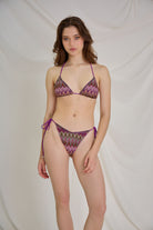 Slip into the "Nocturnal Sky" bikini from our "Nature's Symphony" collection and embrace the mystique of alpine nights.The top's triangle form and the V-shaped bottom are designed for a flattering, adjustable fit, allowing ease and comfort as you move. Delicate embellishments evoke the twinkling of stars, adding a hint of glamour and sophistication to the design.